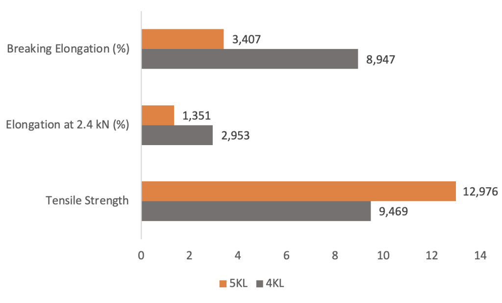 - Moderate elongation for tension consistency under load
