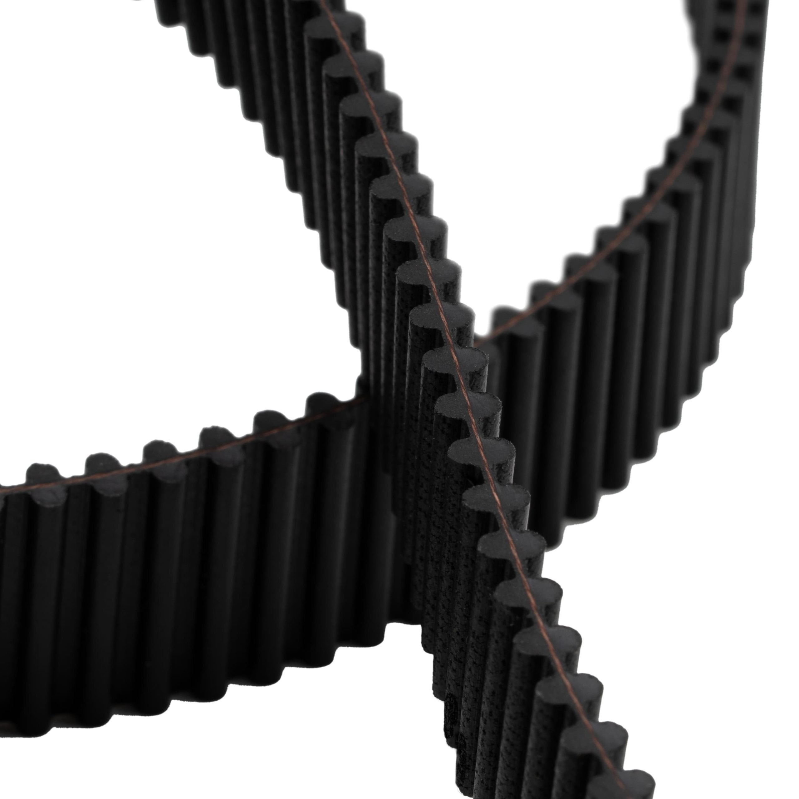 The meticulously crafted and evenly distributed elastomeric teeth guarantee exact alignment within the pulley grooves.